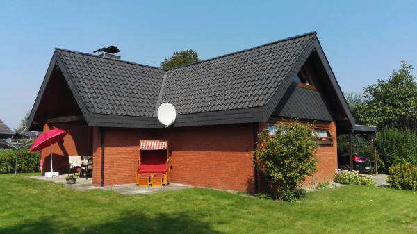 Das Ferienhaus geht über 2 Etagen und bietet Ihnen ein Wohnbereich mit Zugang zur Terrasse. Hier können Sie das Urlaubswetter in Ihrem eigenen Strandkorb genießen oder sich auf einer unserer Sonnenliegen erholen.