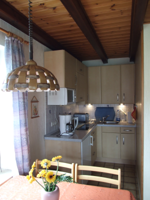 Die Einbauküche verfügt neben 4er Ceranfeld, Mini-Backofen, Geschirrspüler, Mikrowelle, Kühlschrank mit Eisfach natürlich über alle Küchengeräte und ausreichend Geschirr.